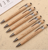 ปากกาที่ใช้ทำโลโก้สำหรับเป็นของขวัญ ของชำร่วยในงานแต่งงานที่เป็นเอกลักษณ์ ใช้งานได้จริง และพกพาสะดวก ซึ่งแต่ละแบบก็มีเสน่ห์และความพิเศษเฉพาะตัว ปากกาแบบไม้ (เป็นเอกลักษณ์และรักษ์โลก)